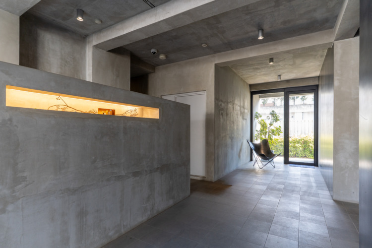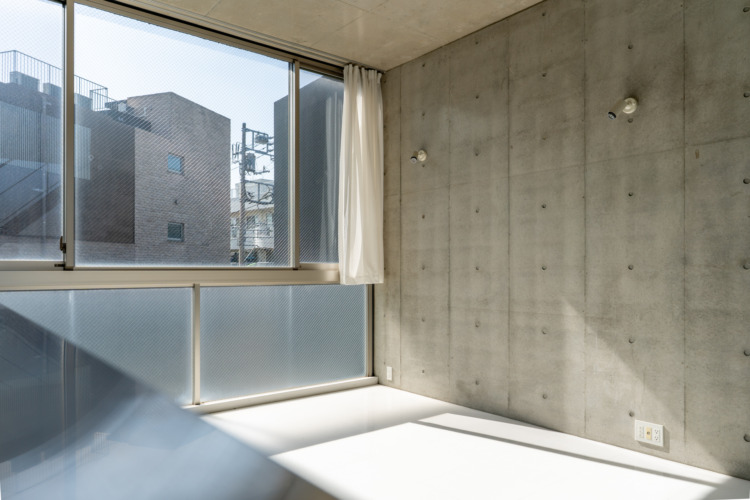 木毛セメント板を剥き出しにした天井に耐荷重のあるスチールフェンスを渡すことで、サーフボードなど長さのあるものをフェンス上に置いておけたり、植物などをハンギングできるなど、限られた空間を有効活用できるよう工夫されています。
