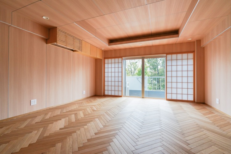 お部屋は12㎡ととてもコンパクトですが、建物が角地にあり道路に囲まれているため、どのお部屋からも眺望に抜けがあり、日差しが入ってくる明るい印象なので、圧迫感が不思議とありません。