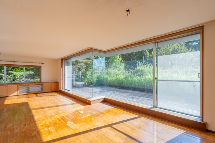 東南角部屋の2面採光につき日当たり風通しもかなり良好。リノベーションに適した物件の条件として、窓の多さは間取りのバリエーションに直結する重要な要素です。