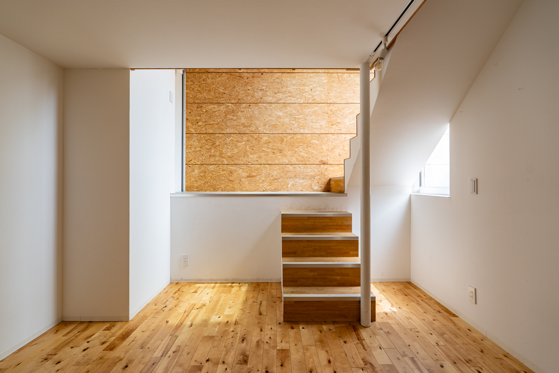 2階部分は水回りの前にシングルのマットレスなら置けそうなスペースがありますが、ここはウォークインクローゼットと水回りのフロアと捉えるのが素直な使い方かもしれません。