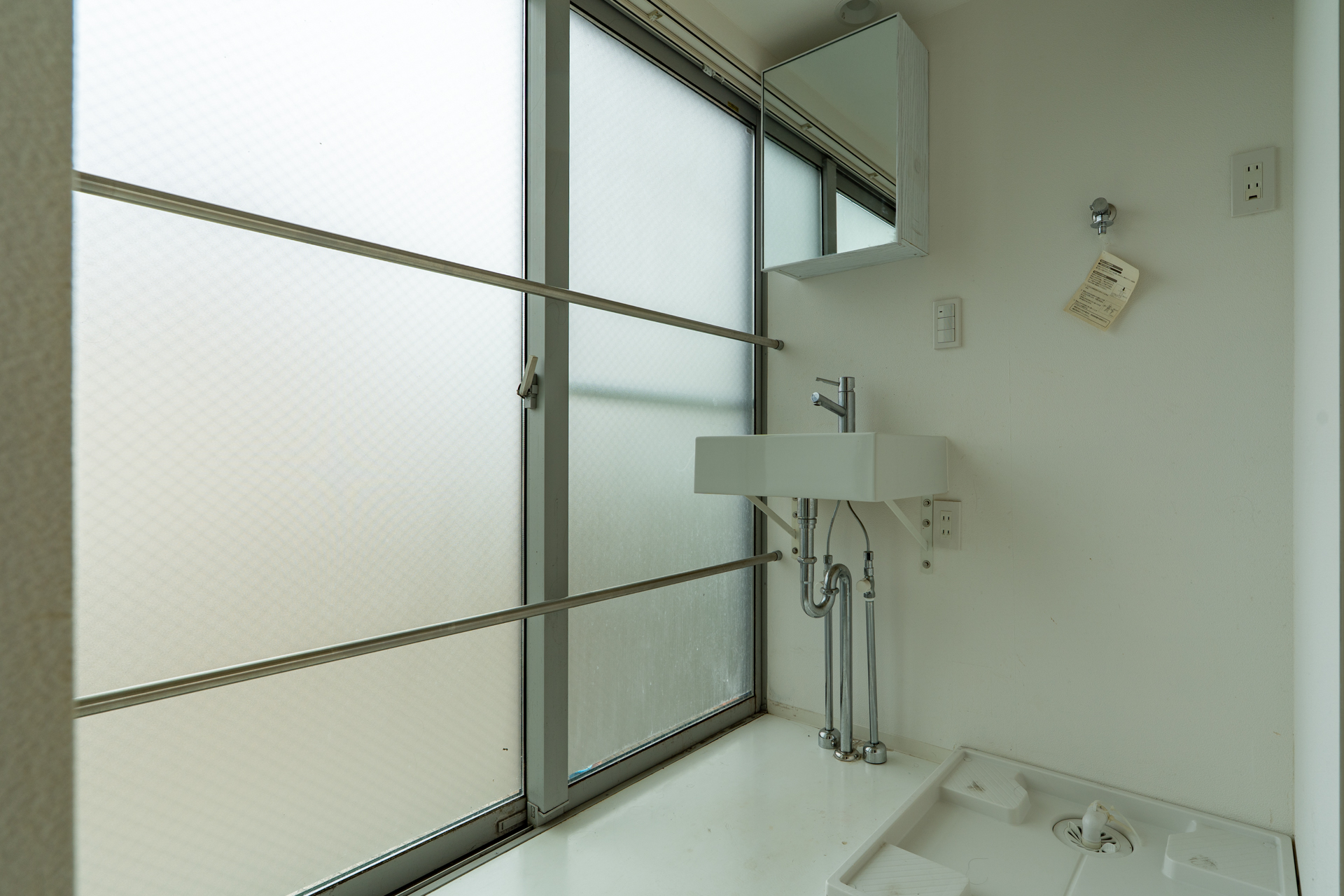 白くて明るいバスルームには引違いの大きな窓があるため、窓を開け放った状態での入浴も楽しめます(浴室のブラインドとカーテンのロールスクリーン設置済み)。